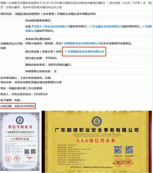 街道應急辦開展粉塵涉爆企業(yè)專項整治項目中標:廣東鵬碩職業(yè)安全事務有限公司