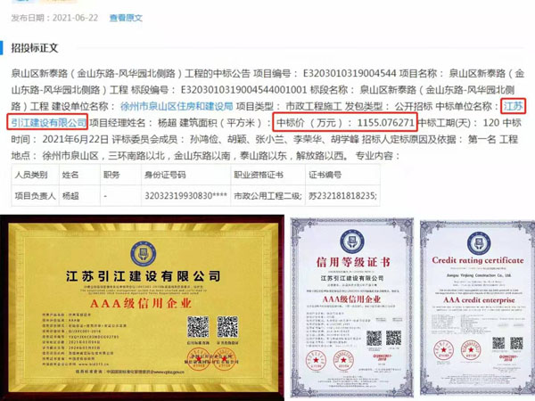 江蘇引江建設中標1155萬泉山區新泰路工程